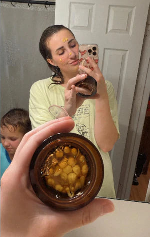 Mix the vitamin capsule and the transparent gel in a ratio suited to your skin type.