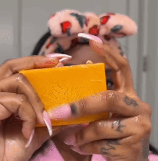 Lather: Rub the soap bar between your hands until you obtain a rich, abundant foam.
